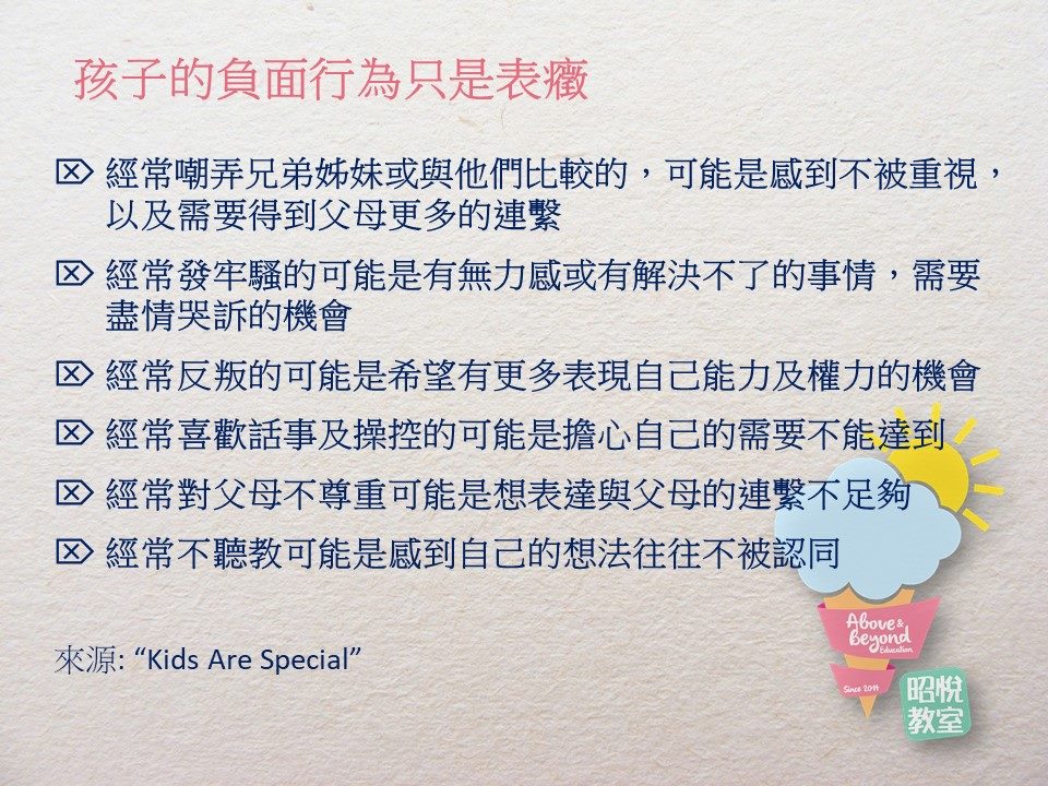 孩子的負面行為往往只是表癥,不要被「表癥」影響自己的情緒,因而錯過幫助孩子解決真正問題的機會,並影響親子關係