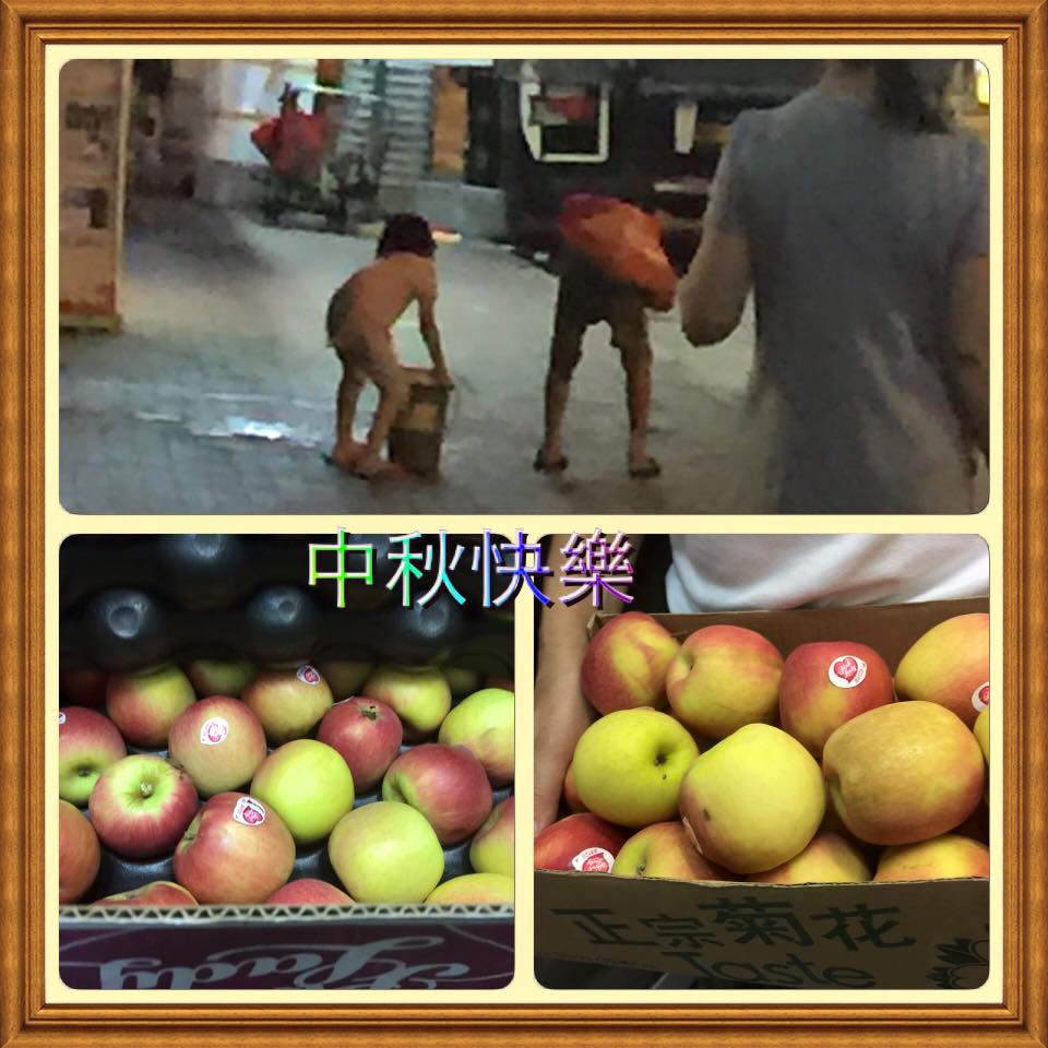 中秋節晚上,把美國領事館捐贈的蘋果,分派給深水埗的地攤婆婆及伯伯,大家都十分欣喜地感謝,包括平常會被嫌棄的不完美蘋果,還嗅著說很香,說是最好的過節禮物。